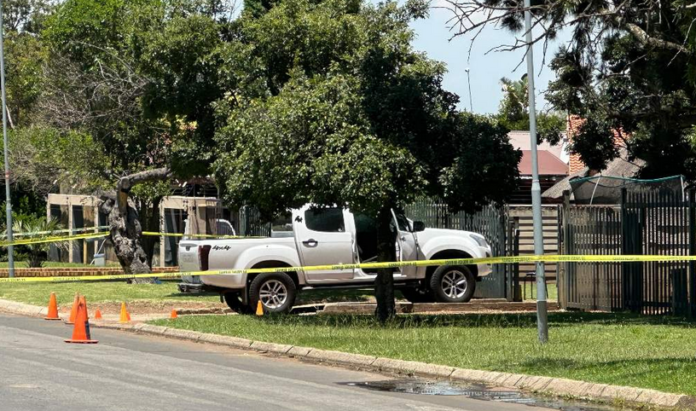 “Guys, number 13 Klapper Street, 13 Klapper Street Van Dyk Park – come and assist me here, 13 Klapper Street Van Dyk Park. They shot my bakkie…I don’t know if it’s a hit or something. I managed to get out.”